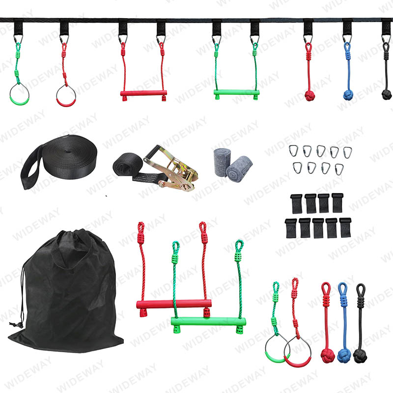 • دوره کامل مانع Ninja Warrior برای بچه ها که دارای یک خط 15 متر با Ratchet برای تفریح و آموزش بی پایان هستند.